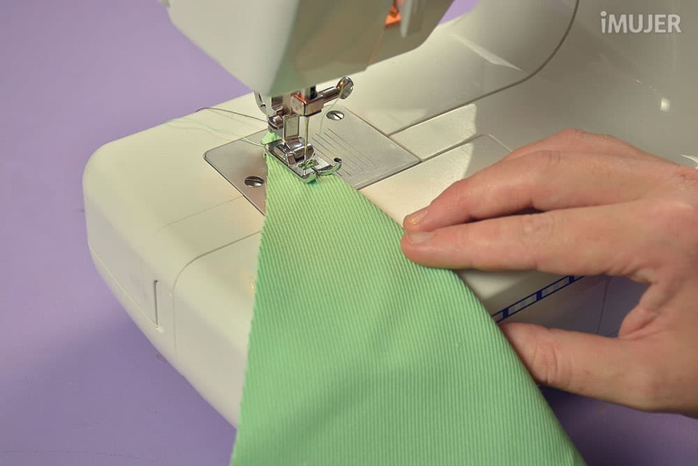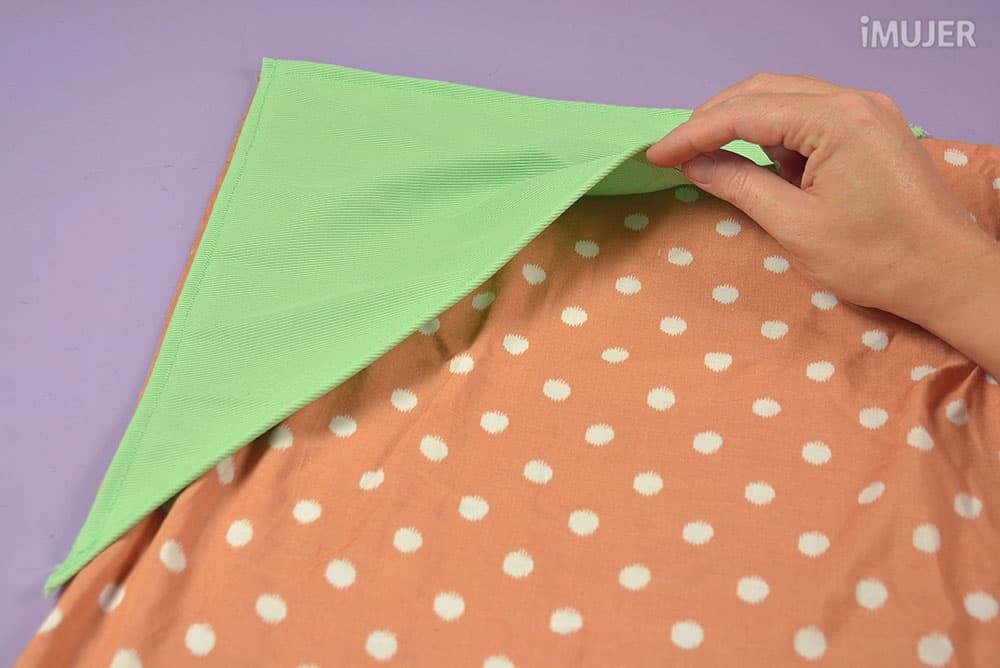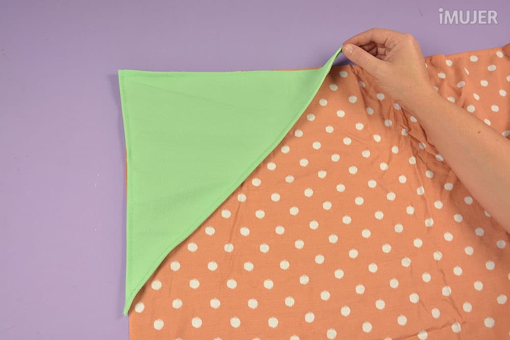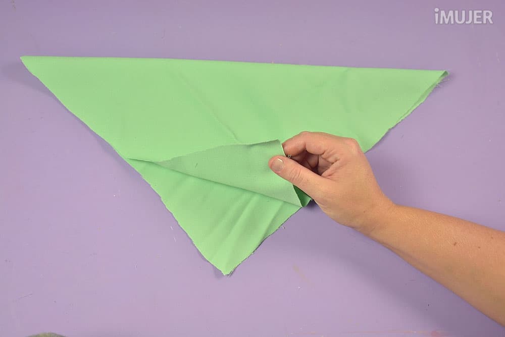 Coloca el triángulo sobre una de las esquinas de la tela estampada.