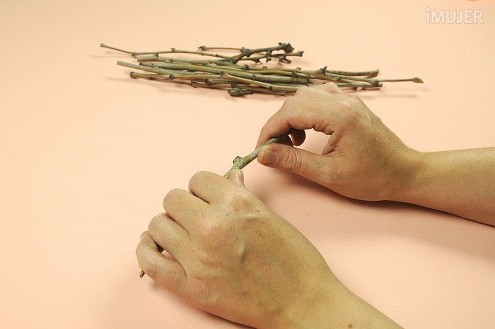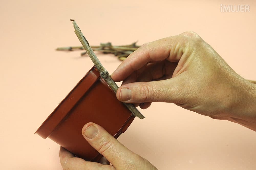 Quiebra las ramitas con tus dedos de un largo un poco mayor al de la maceta.