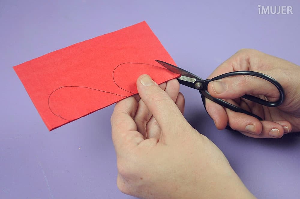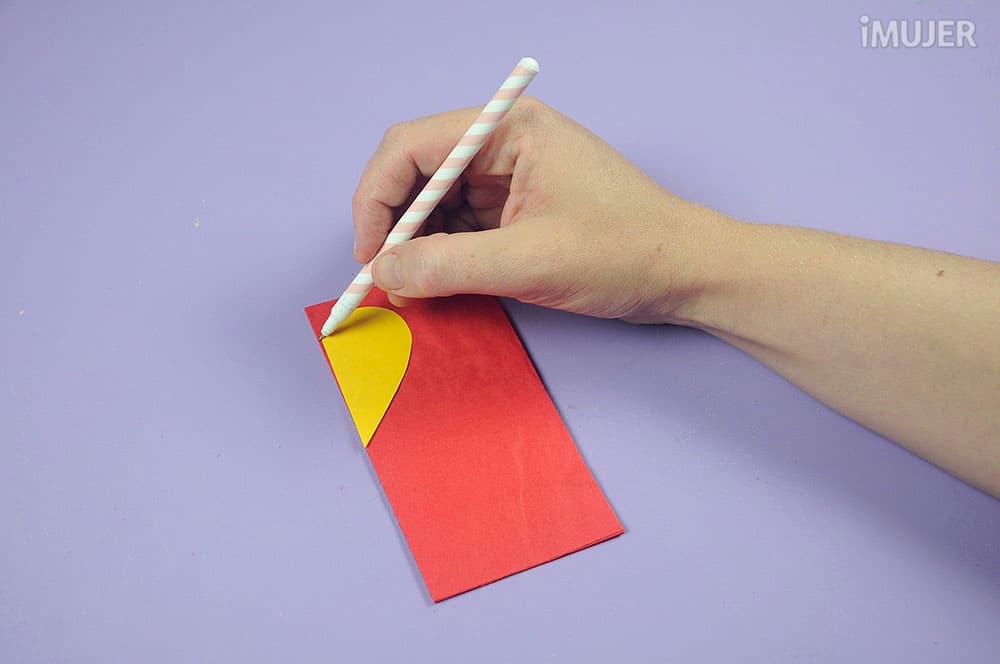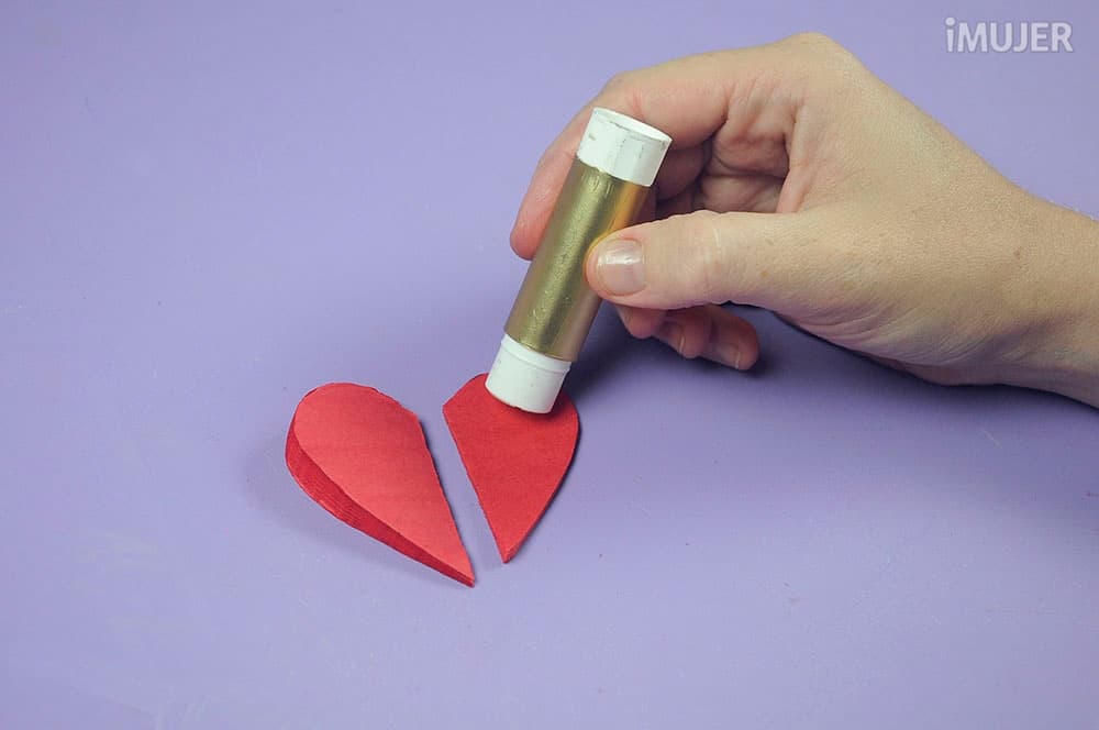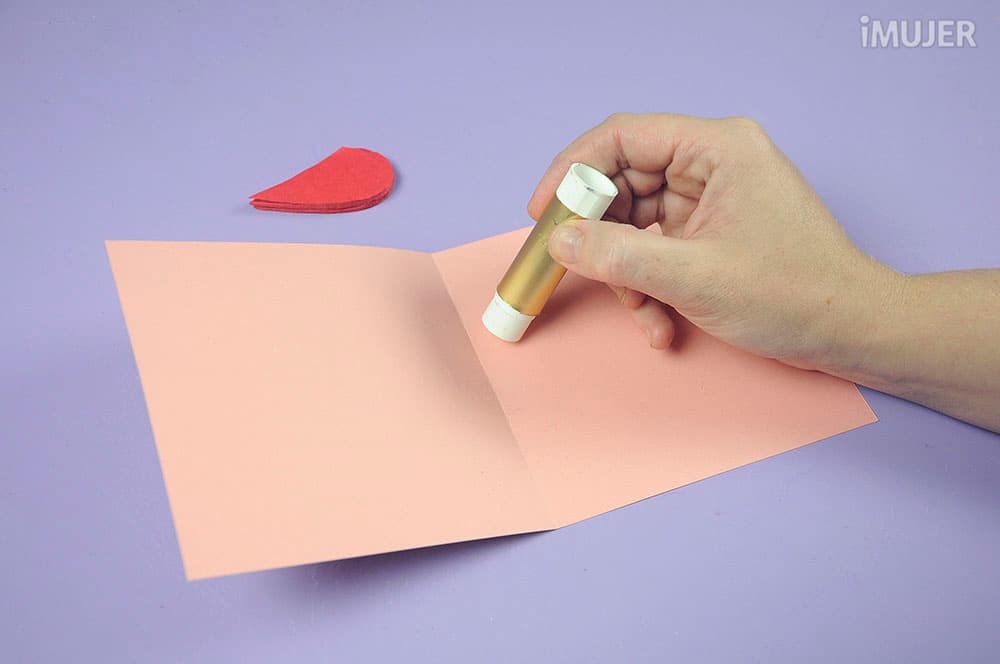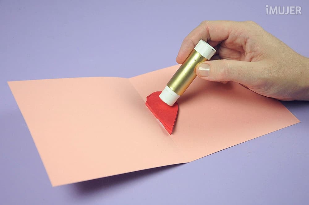 Usa pegamento de los dos lados de la figura para que, al abrir la tarjeta, el corazón tome su forma completa.