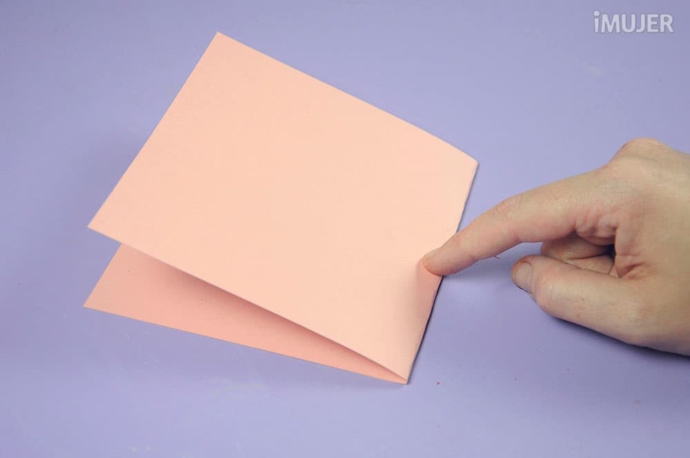 Dobla la cartulina para obtener la forma de la tarjeta.