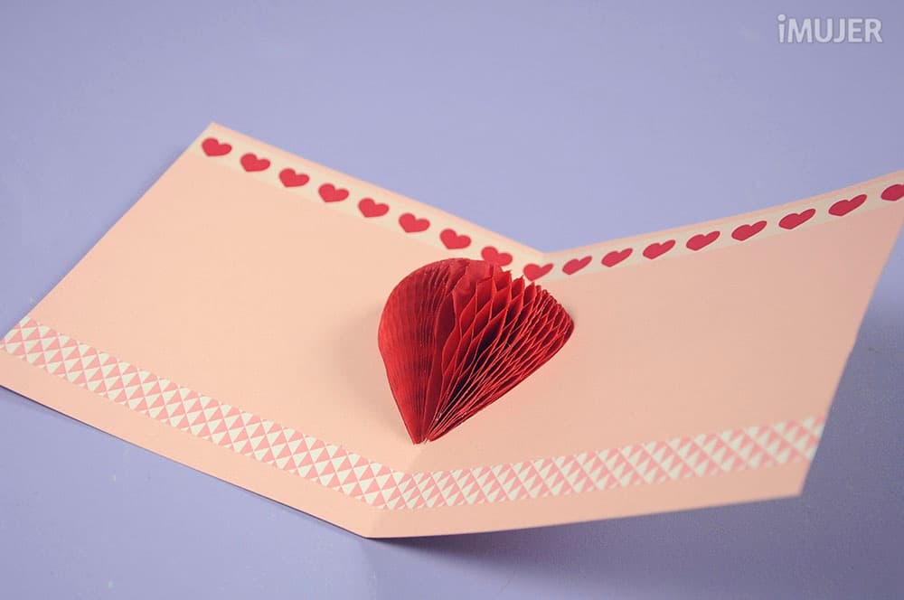 Cuando abras la tarjeta obtendrás un hermoso corazón de papel panal que hará muy feliz a esa persona especial y se sentirá muy querida, ¡qué hermoso regalo!