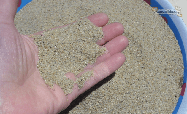 La arena con la cual harás el contenedor debe estar bien limpia. Si tienes en casa un tamiz, fíltrala para quitarle las impurezas.