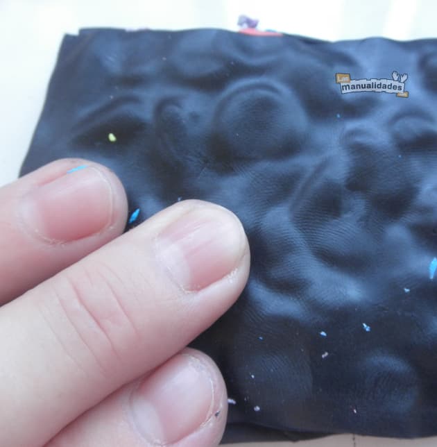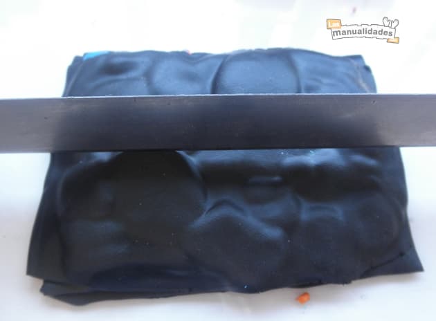 Sobre esta capa, ponemos una nueva lámina de arcilla polimérica negra y presionamos sobre ella para que se vaya compactando.