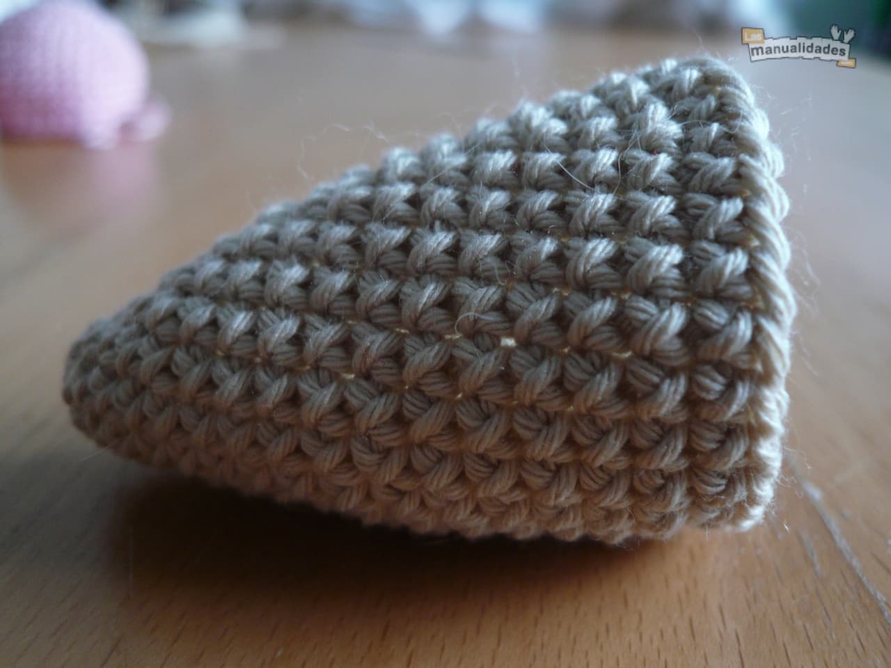 Rematar y dejar una hebra un poco larga con la que luego coseremos la parte superior del cono.