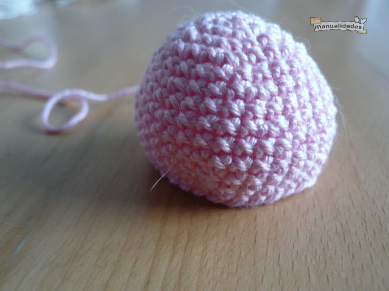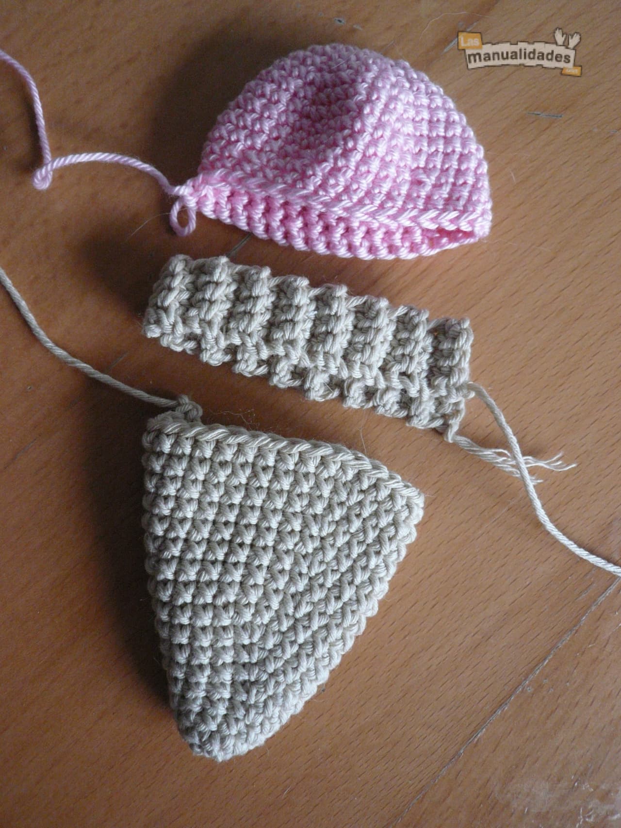 Con lana beige, o marrón claro, hacemos una cadeneta de cinco.