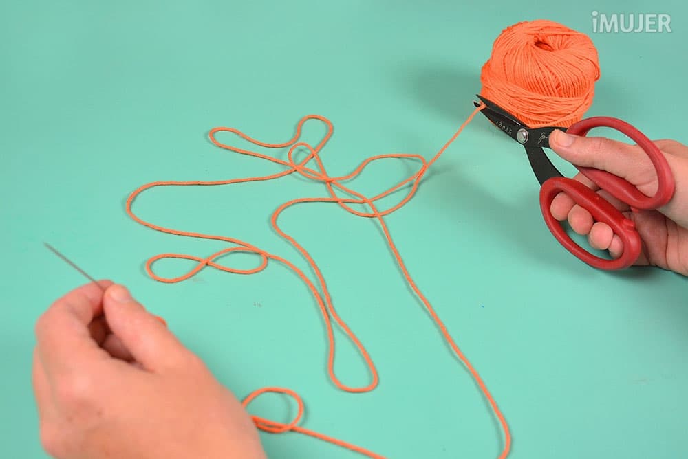 Con la tijera corta el hilo que ha sobrado después de formar el triángulo.
