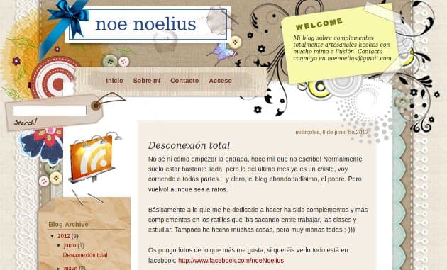 NoeNoelius es sitio en el que nos muestran bonitos anillos, pendientes, broches, adornos para el pelo y todo tipo de complementos artesanales hechos 100% a mano.