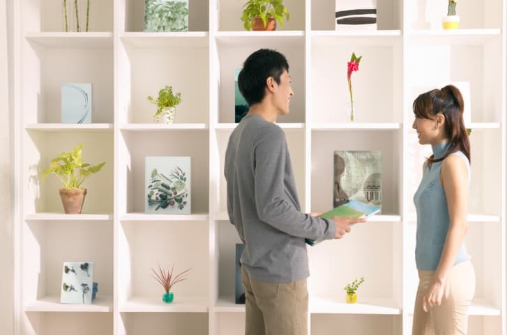 6) Si sólo deseas guardar un par de libros construye plataformas poco profundas en la pared. Así habrá el espacio suficiente como para mezclar tu colección de libros con otros objetos como pinturas, adornos o obras de arte.