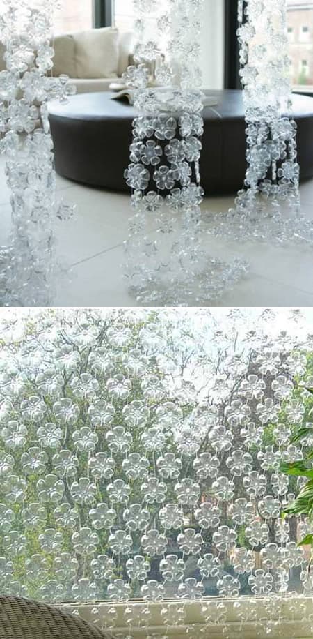 El diseño de este biombo es de Michelle Brand y ha sido creado con botellas de plástico. ¡Esto se llama saber reciclar!