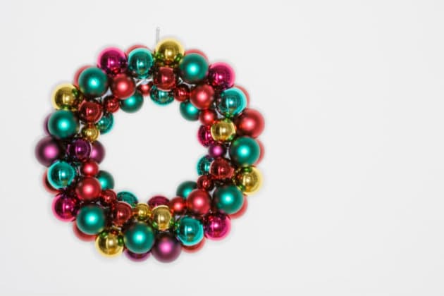 También con esferas de Navidad de distintos tamaños, y de colores doradas o plateadas, según escojas alguno de los dos para tu fiesta, haz una corona para la puerta de entrada. Verás el brillo y la elegancia que aporta este detalle.