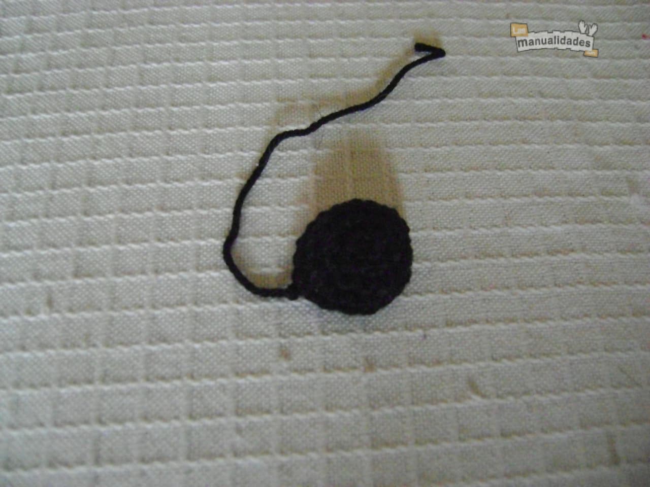 Con lana negra tejemos un pequeño círculo que habrá que rellenar ligeramente y que será la nariz de Stitch: