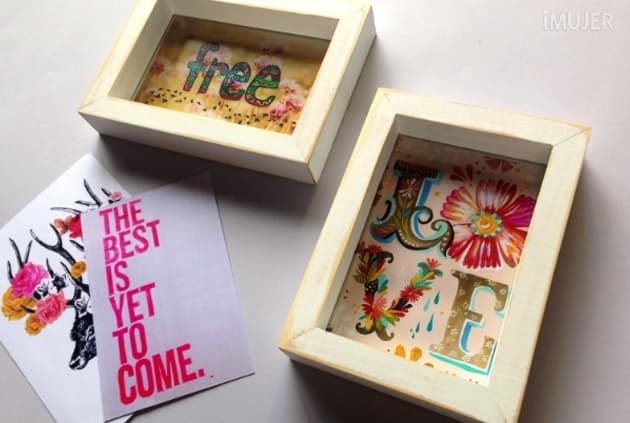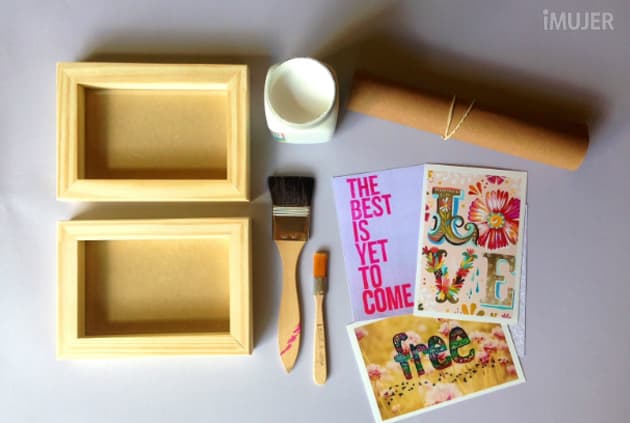 Para empezar, desarmá los cuadritos y dejá a un lado el vidrio y la base de cartón. Por el momento vas a trabajar únicamente sobre el marco de madera.
