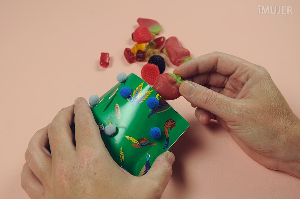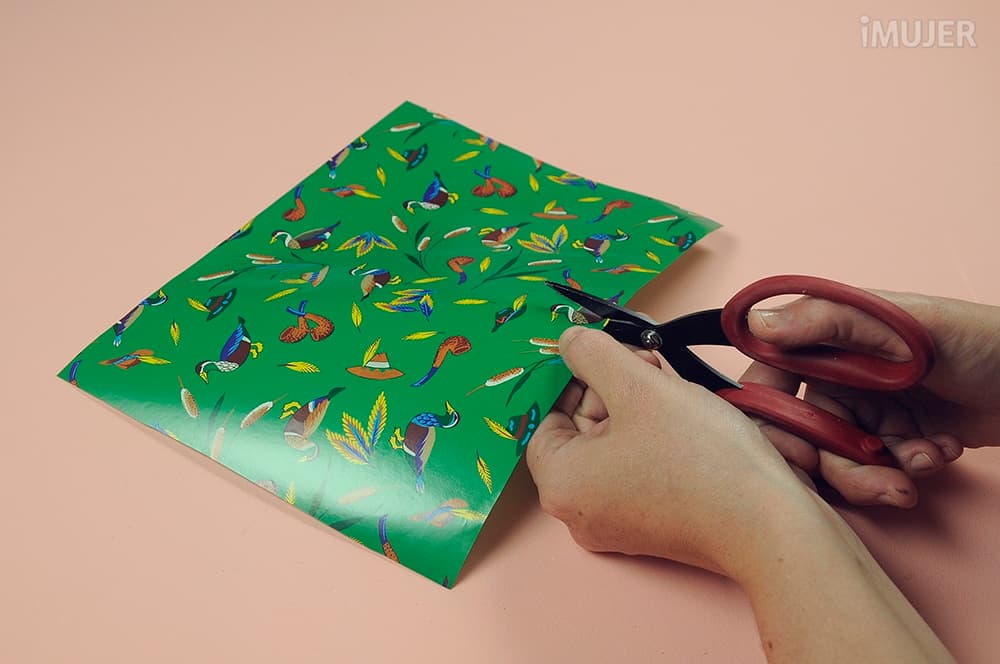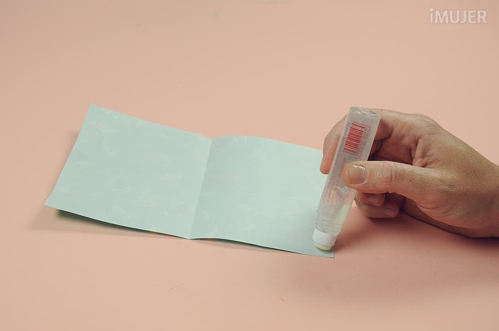 Lo primero que debes hacer es cortar el papel según el tamaño de lo que pondrás adentro. Luego, pega los extremos con pegamento para formar la bolsa.