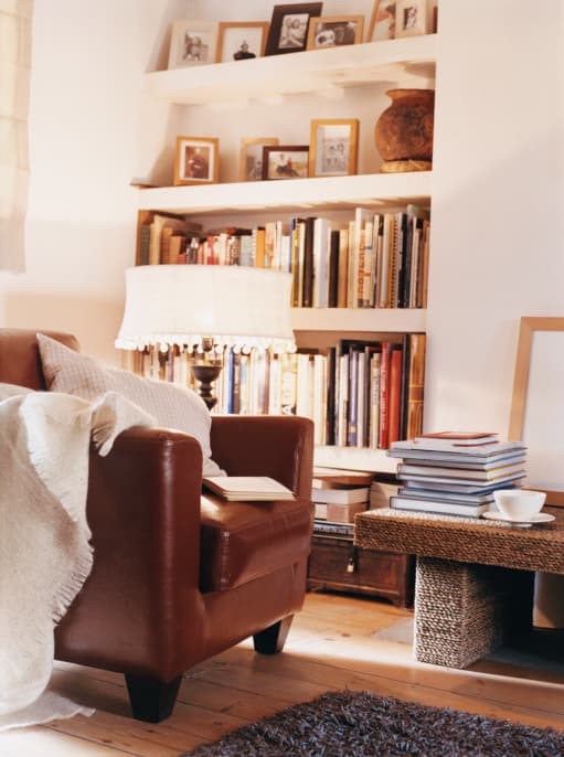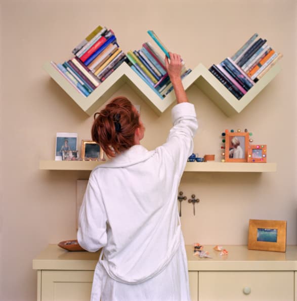 - Agrupa los libros y los platos por tamaño y color. Así lograrás un mayor impacto artístico.