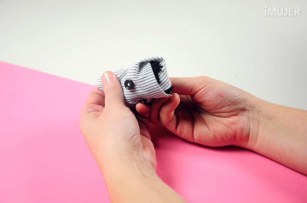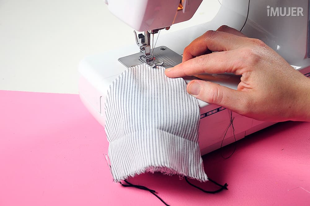 Ten en cuenta de dejar un orificio sin coser para poner el relleno y para poder ponerlo del derecho.