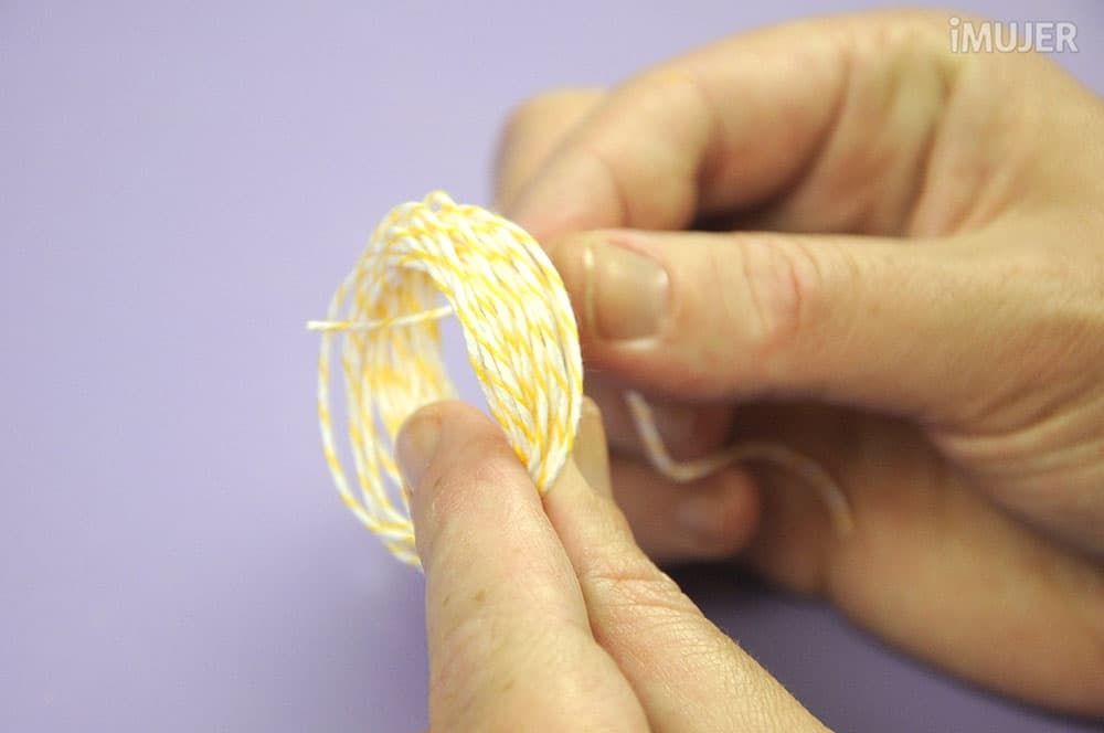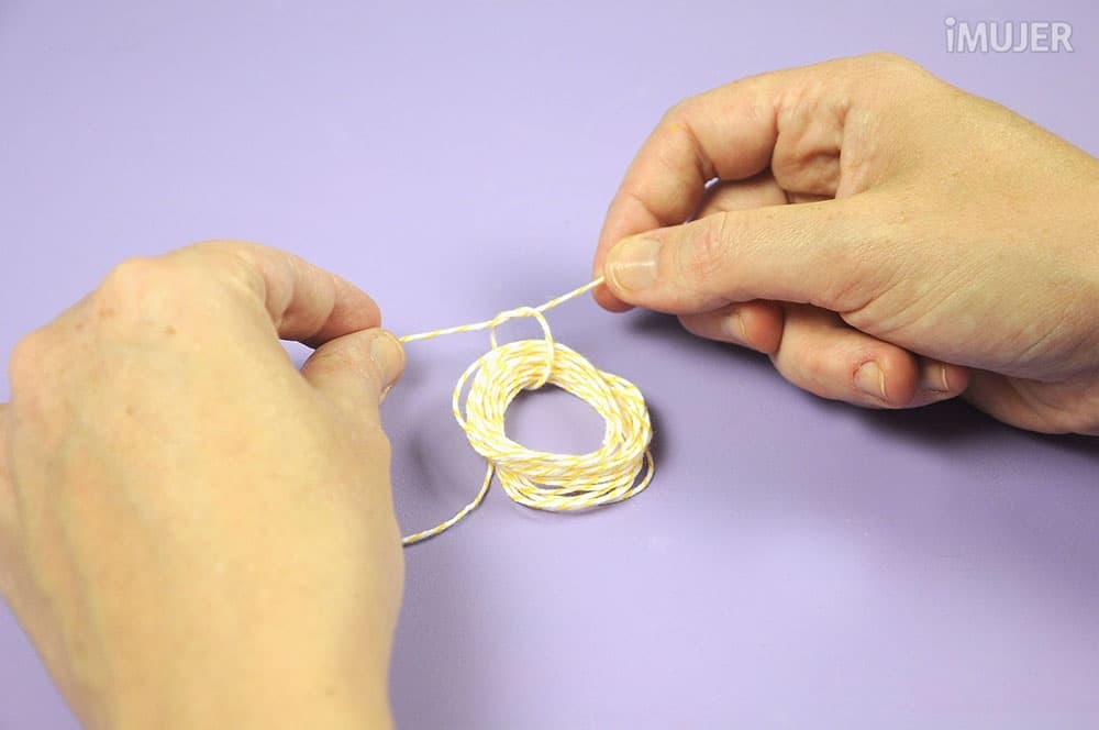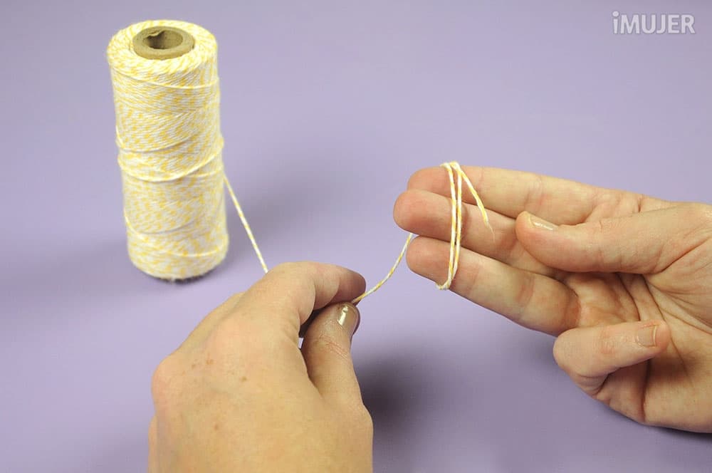 Cuanto termines quítalo con cuidado de tus dedos y átalo en un extremo. Deja unos centímetros de hilo sobrante.
