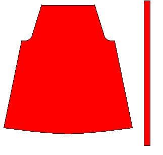 Debes cortar dos piezas iguales como ves en el dibujo. Asegúrate de medir tu ancho de busto y asegurarte que la pieza sea igual de ancha en esa zona.