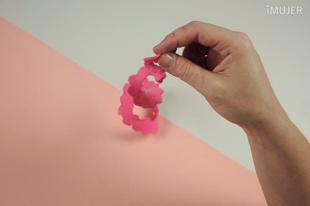 Pega el extremo para que la flor no se desarme.