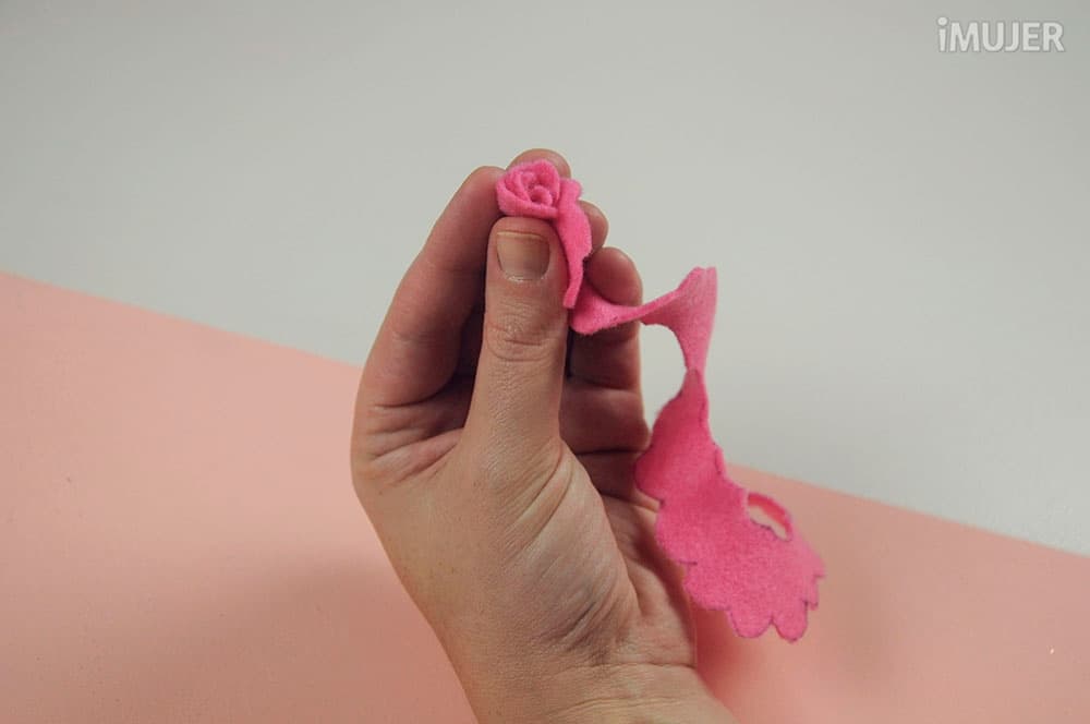 Comienza a enrollar el fieltro desde el centro hasta el extremo,