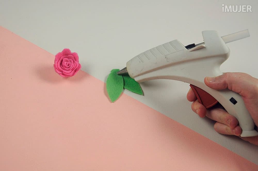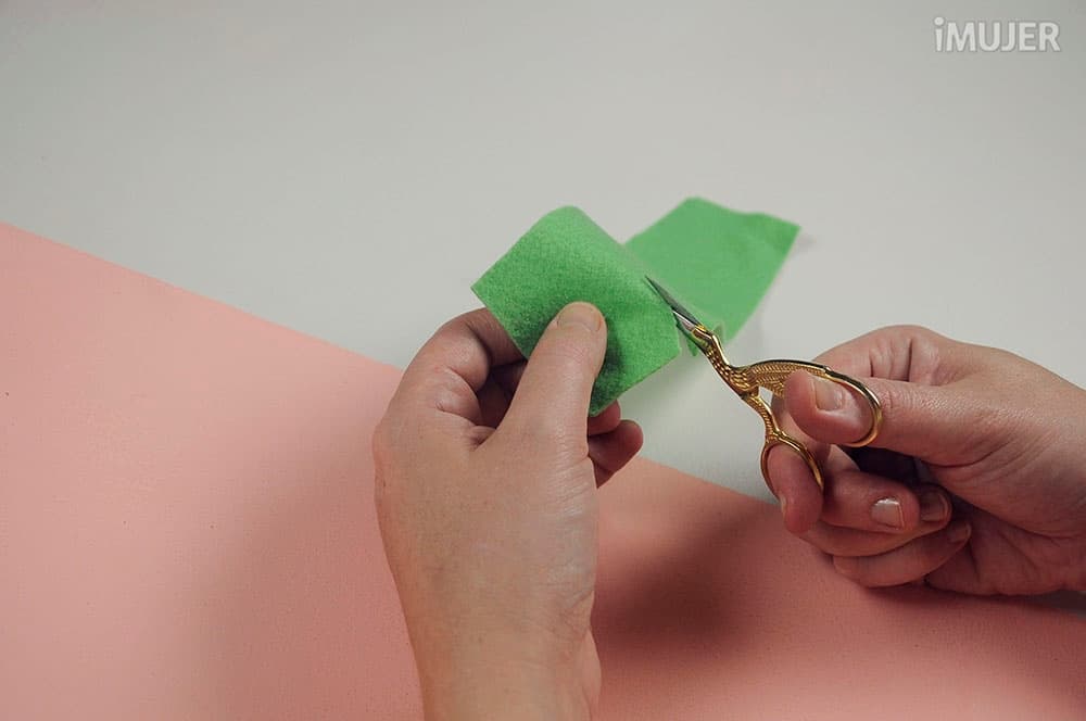 Usa el fieltro verde para modelar las hojas de las flores.