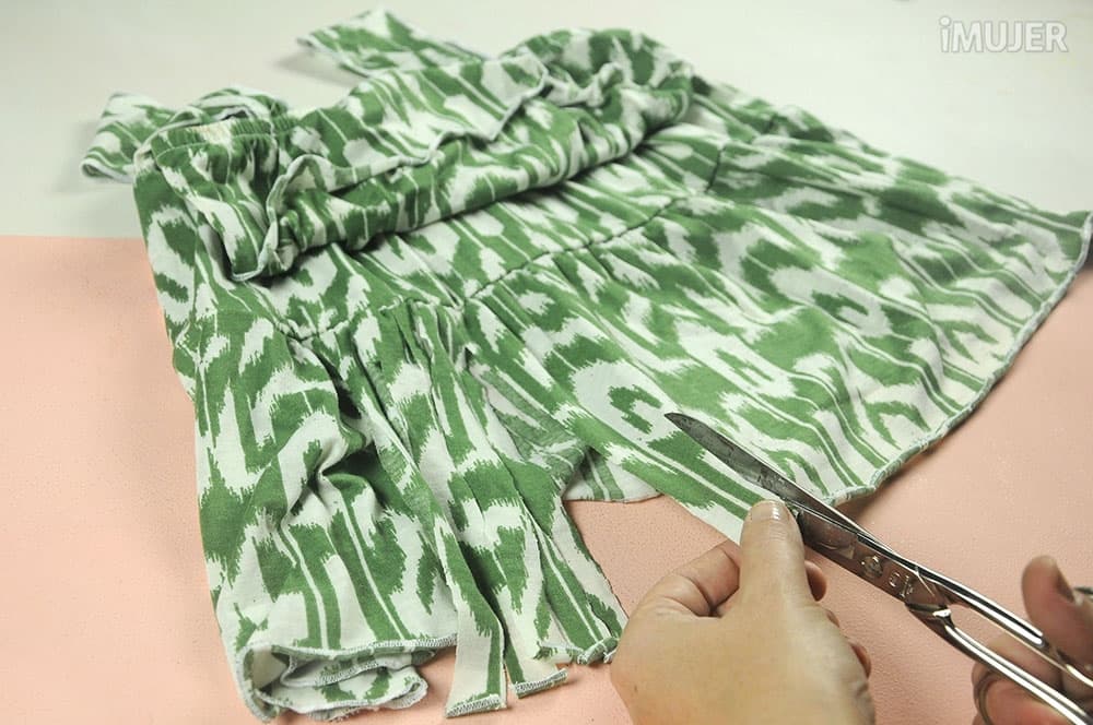 Comienza cortando los flecos en el extremo inferior de la camiseta que elegiste para darle un nuevo look.