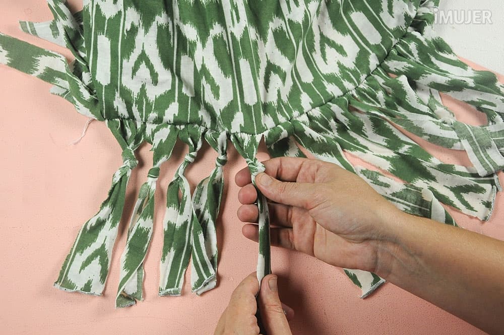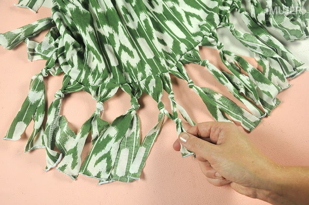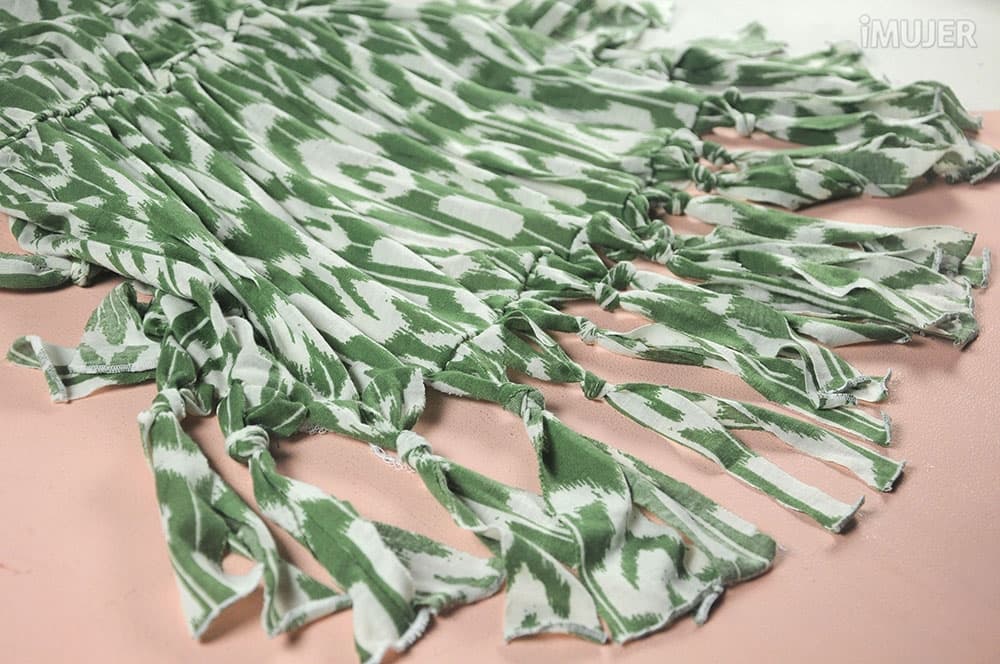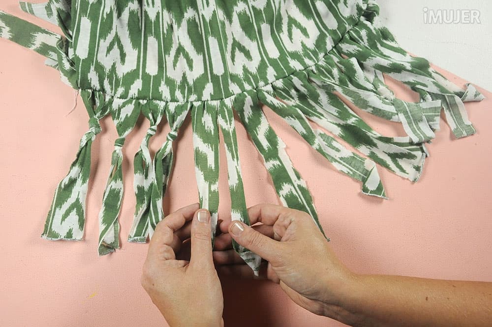 Así sucesivamente por todas las tiras dejando los extremos de los flecos libres...
