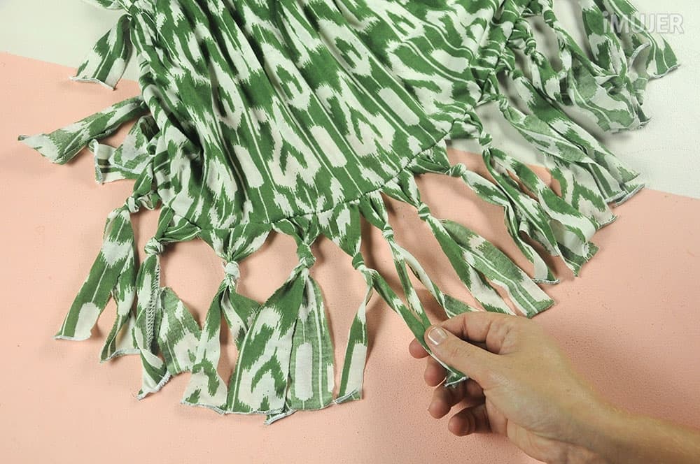 Luego toma los dos extremos de los flecos...