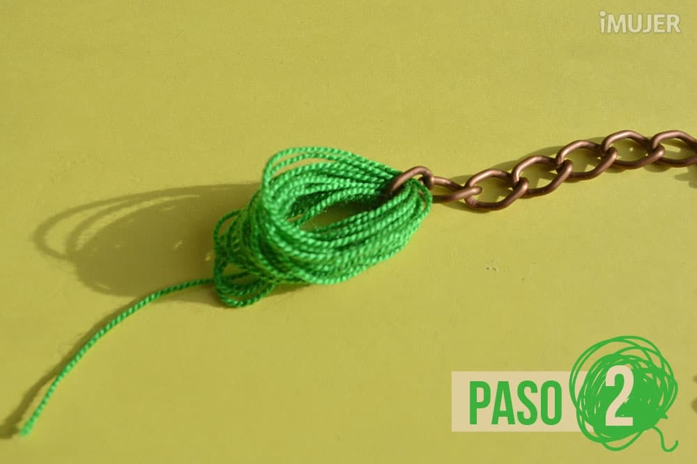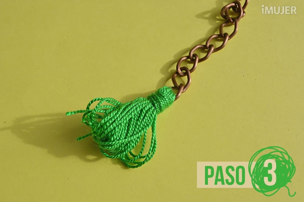 Una vez enrollado colócalo de esa manera entre el eslabón de la cadena.