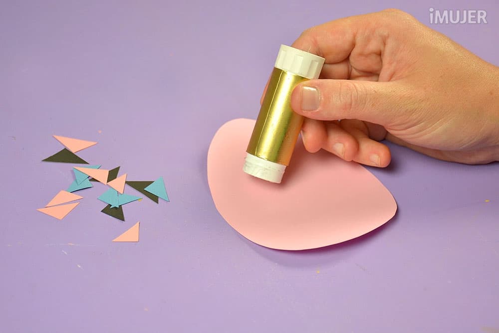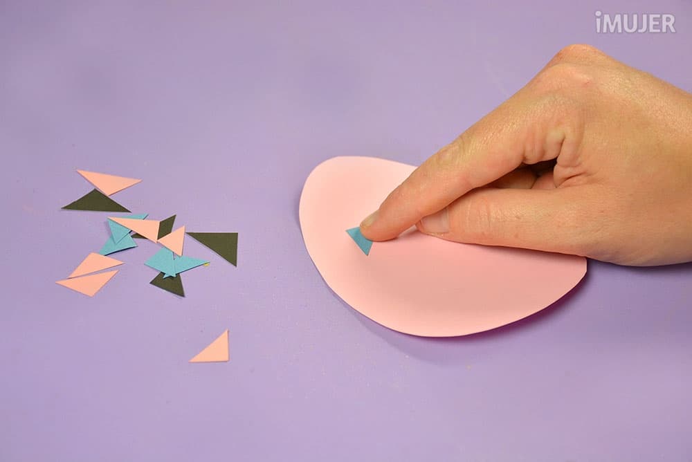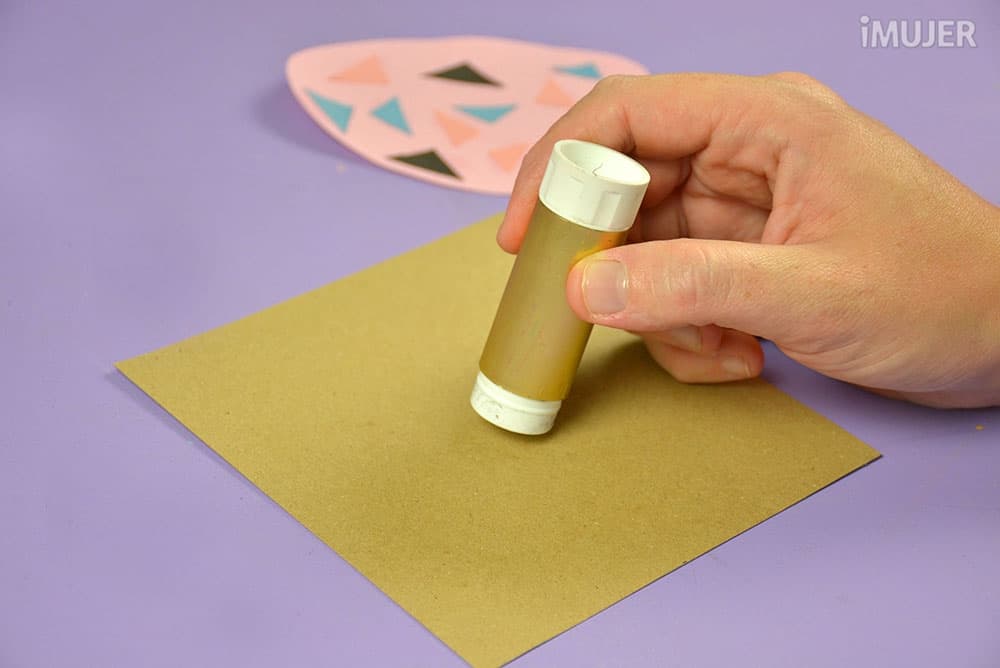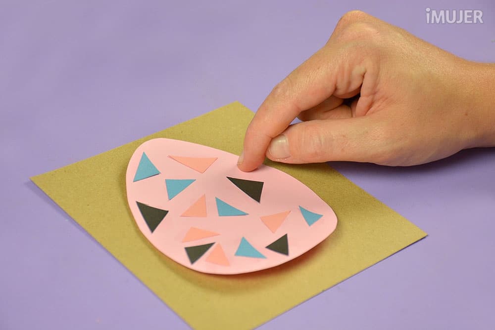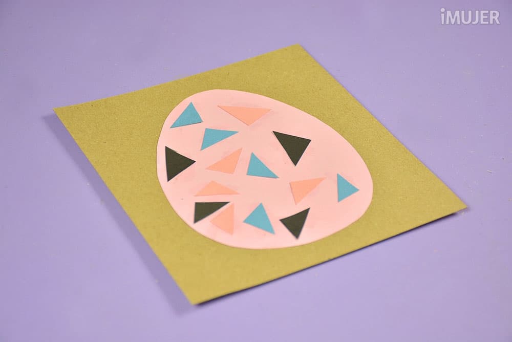 Para terminar la portada de esta tarjeta de pascua, pega el huevo al cuadrado de papel.