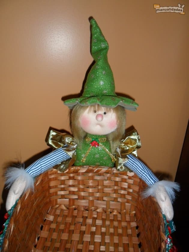 Pega las piernas y los brazos al canasto. Agrega los zapatos con una buena costura y ¡listo! ¡Ya tienes un dulcero navideño de duende listo para llenar de caramelos! Apuesto a que los peques quedarán realmente maravillados con esta manualidad. ¿No te parece?