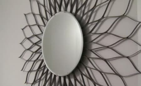 Para pintarlo rocíalo con varias capas de pintura en aerosol. Para este espejo se ha utilizado una capa de gris y se ha cubierto con una capa de níquel satinado en polvo.