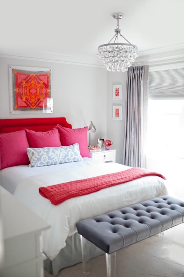 Un dormitorio casi totalmente ambientado de blanco te garantizará la calma cuando estés allí. Es muy elegante y brinda comodidad. Algunos detalles en gris, como por ejemplo almohadones, le dan un poco de contraste y quedan muy lindos. Un detalle a tener en cuenta es la iluminación, que favorece mucho a los colores claros y transforma tu habitación en un sitio lleno de paz.