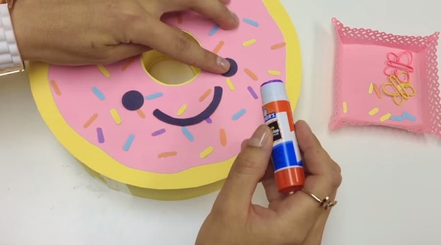 ¡Listo! Tu alcancía en forma de dona está terminada. Ahora ya solo hace falta que la llenes de dinero.