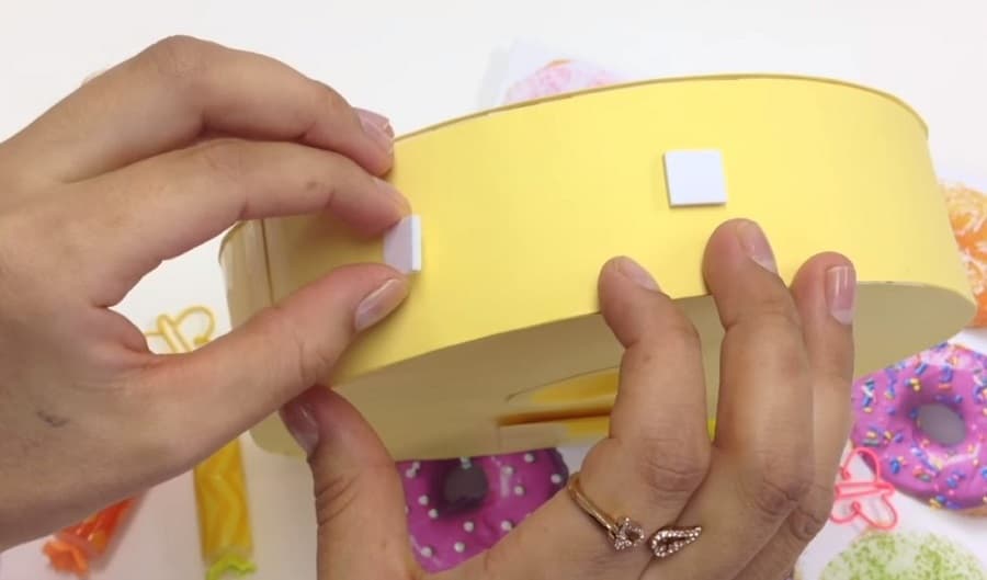 Paso 17. Coloca en la parte de abajo de la dona un par de cuadrados de unicel (como si fueran las patitas) para que se detenga.