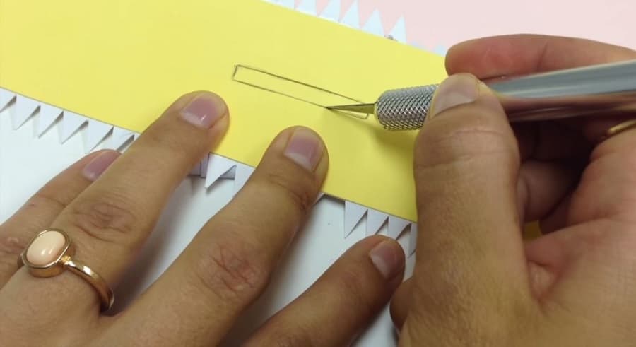 Paso 4. Recorta en la tira, en la parte donde marcaste el espacio de 1cm, picos a todo lo largo.