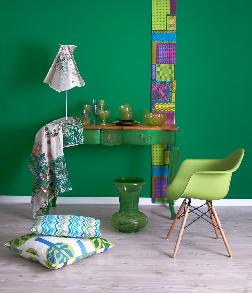 ¡Mejor aún! Puedes combinar varios tonos de verde en un mismo ambiente. E incluso incorporar muchos colores intensos. Y no, no parecerá un carnaval.