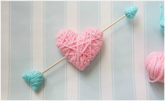 Simplemente corta un molde de corazón en espuma plast, envuélvelo mucho hilo de color, pega la punta final con silicona y tendrás tu corazón.