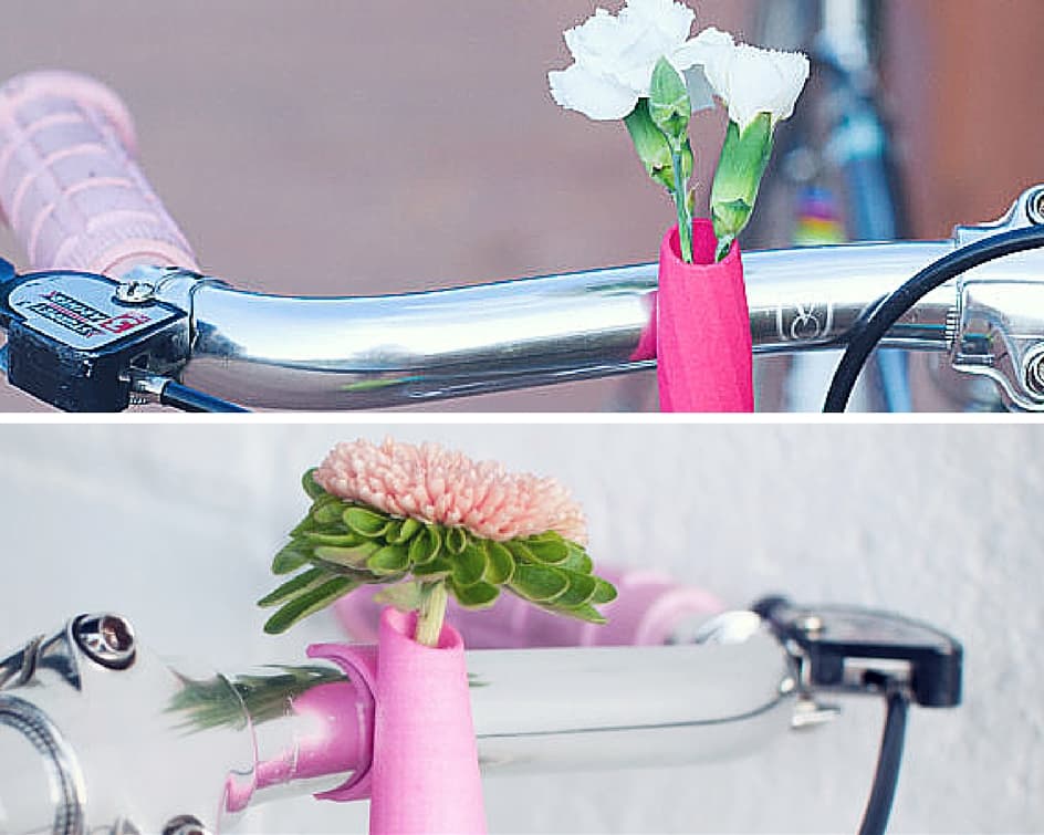 Eso fue lo que hizo Colleen con sus pequeños floreros para bicicleta, que dicho sea de paso, ¡son adorables!