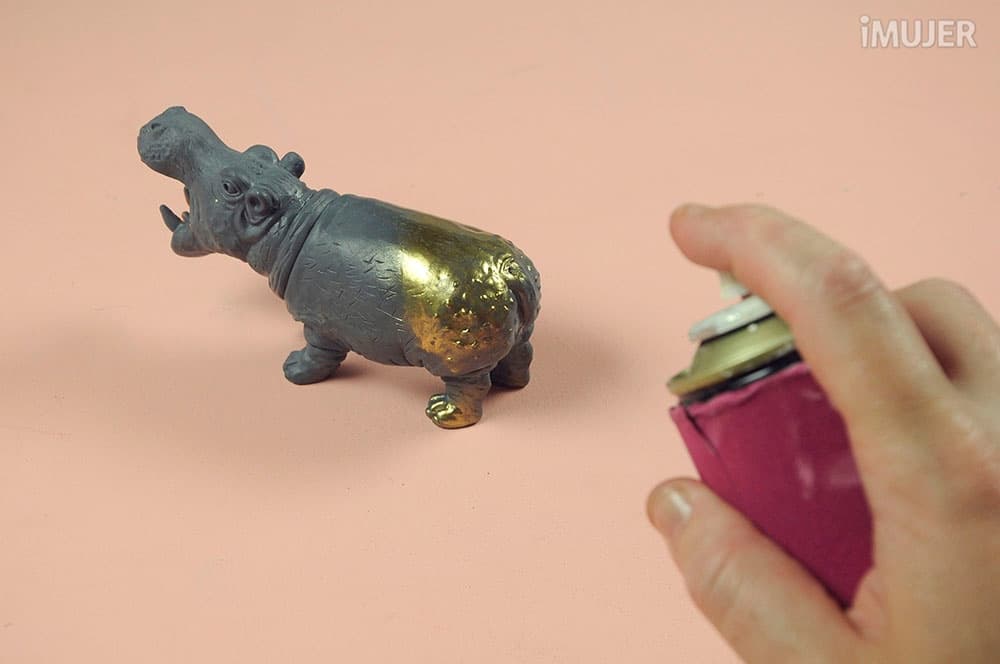 Cubre el animal de juguete con la pintura en aerosol.