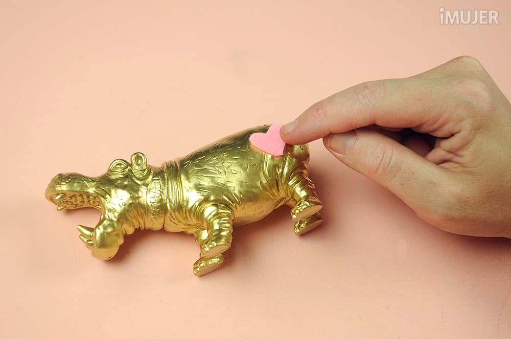 Pega con silicona el corazón del en la parte trasera del animal decorativo.
