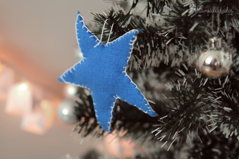 ¡Lista! ¿No está genial este adorno? Cósele un hilo en un extremo para poder colgarla en tu arbolito de Navidad. Repite este procedimiento para hacer todas las estrellas navideñas de fieltro que quieras y de los colores que más te gusten.