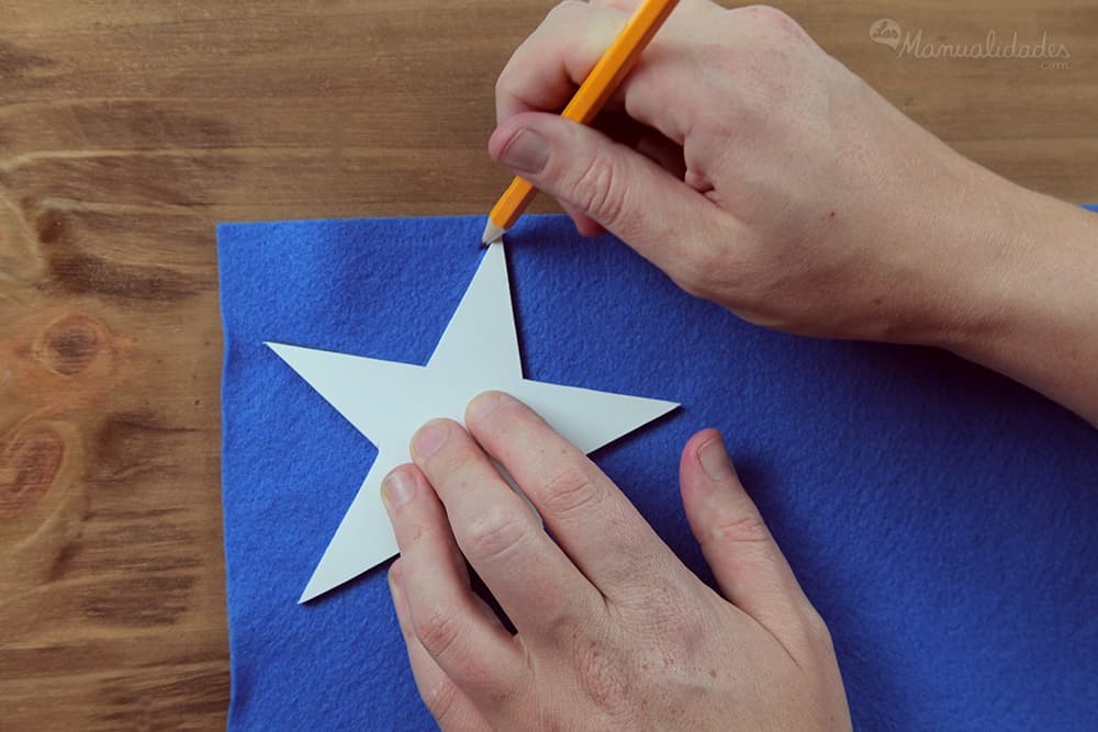 -->Copia la estrella sobre el fieltro con el lápiz.