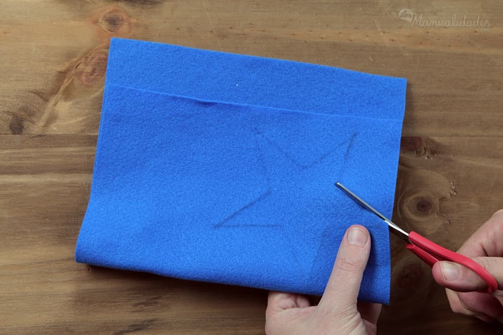 -->Dobla la tela y recorta por el contorno del dibujo de la estrella.