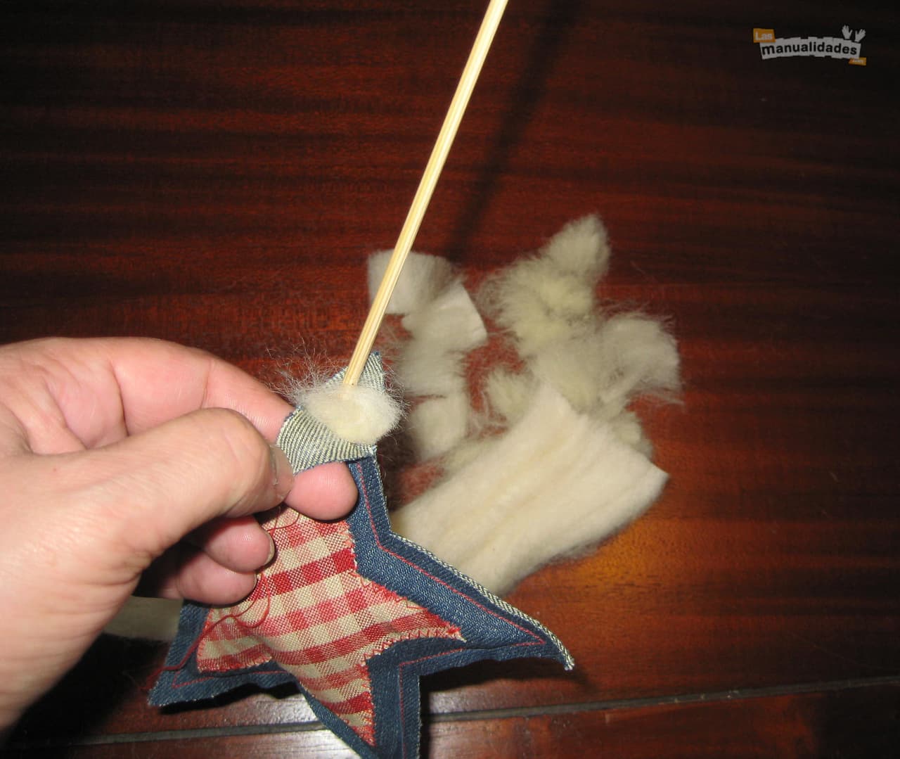 Recorta la estrella y rellénala, cuidando de llegar bien a las esquinas. Una vez rellena, termina la costura para cerrarla.