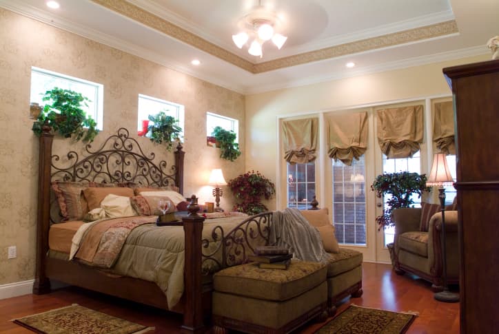 Este diseño está constituido por una mezcla de elementos tradicionales con elementos modernos. Tanto el suelo como las paredes y la cama poseen colores neutrales. Por otro lado, las cortinas, el amohadón y las rosas son de un rojo intenso. El sofá y la cama se caracterizan por líneas tradicionales. La mesa de luz, en cambio, tiene un estilo más contemporáneo.