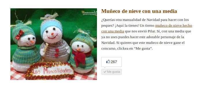 El segundo lugar quedó para los muñecos de nieve hechos con medias, con 267 "Me gusta".