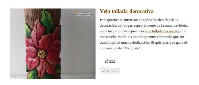 Y el tercer puesto se lo lleva la vela tallada decorativa, que sumó 211 “Me gusta”.