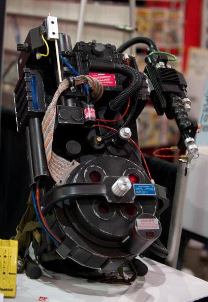 - Para poder cargar el equipo corta los tirantes de una mochila vieja y añádelos a la parte trasera del equipo de protones, ni muy suelta ni muy tensa.