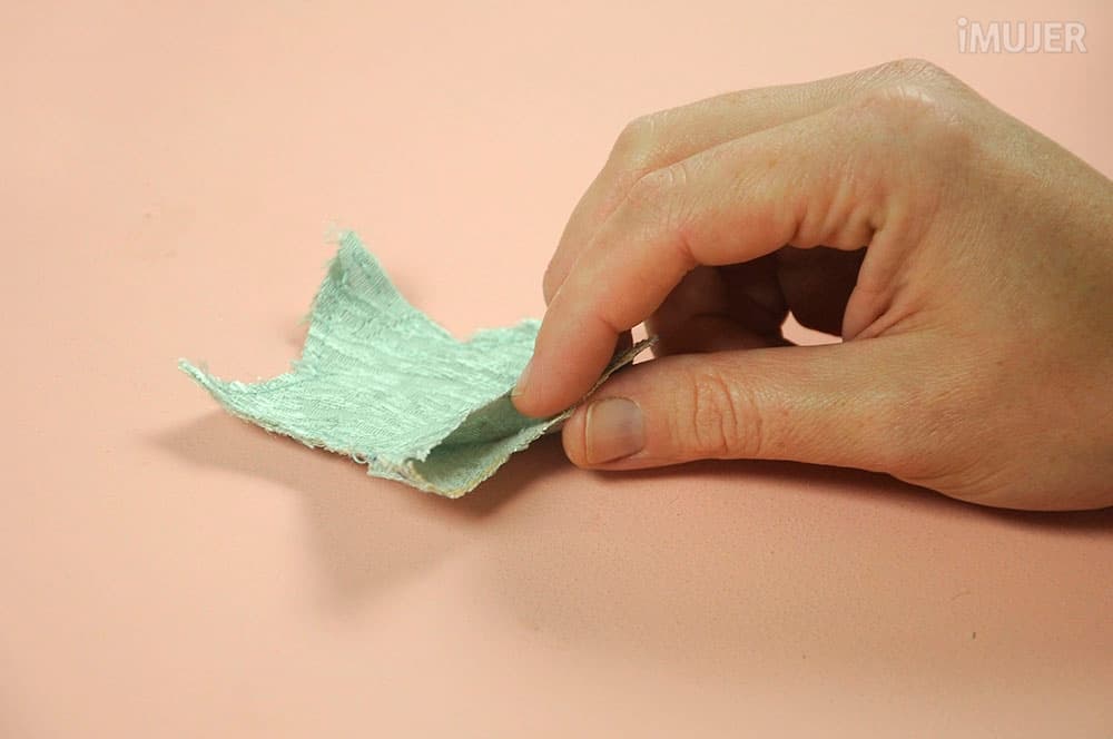 Dobla al medio la tela, dejando la estrella en la parte superior, luego recorta sobre los bordes de la estrella. Con este paso obtendrás dos estrellas.