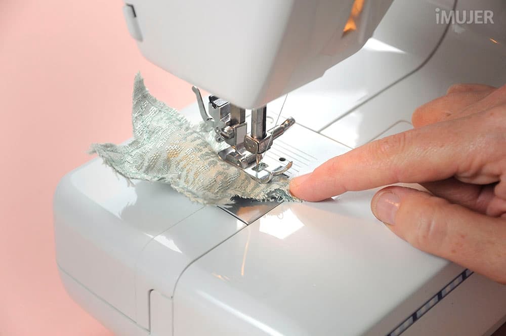 Pone una encima de otra y únelas, dejando un pequeño orificio. Si no tienes máquina de coser puedes hacerlo con hilo y aguja.